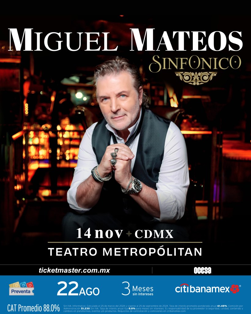 La primera parada será en la Ciudad de México el 14 de noviembre, cuando Miguel Mateos se presentará en el emblemático Teatro Metropólitan. Para esta ocasión especial, el concierto en CDMX será en un formato sinfónico, una oportunidad única para escuchar sus clásicos con arreglos orquestales que realzarán cada nota y emoción de sus canciones más queridas.