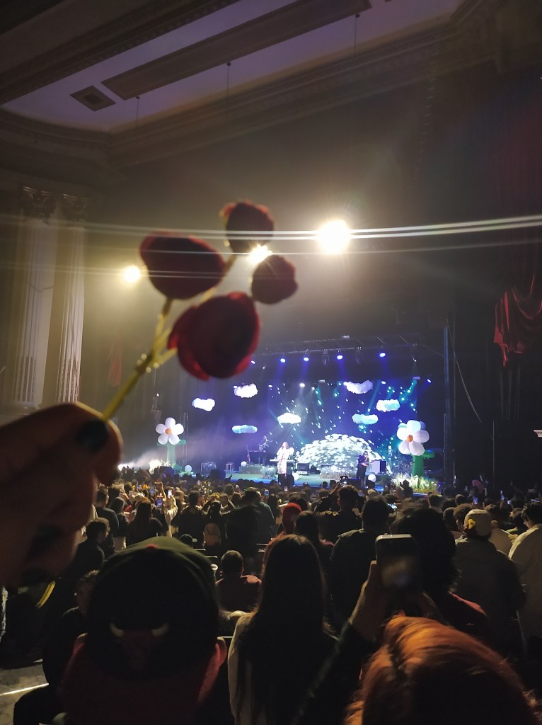 Desde el inicio del show se encontraba una flor en cada una de las butacas del Metropólitan, por lo que el momento más especial de la noche fue cuando la mexicana pidió alzar la flor y corear junto a ella «Que Yo A Ti».