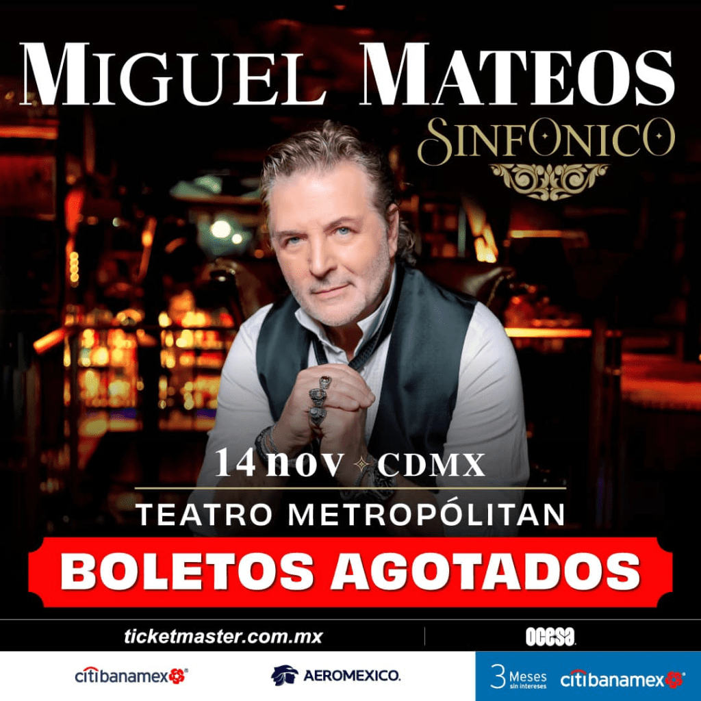 Con entradas agotadas, el Teatro Metropólitan será testigo de una velada histórica el 14 de noviembre. Miguel Mateos está listo para regalarle a la Ciudad de México una noche donde la potencia de su voz y el poder de sus letras resonarán más fuerte que nunca.