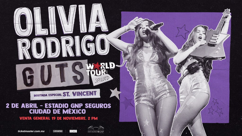 Olivia Rodrigo, la artista multiplatino y ganadora de tres premios Grammy, ha revelado emocionantes noticias para sus seguidores en México: el próximo 2 de abril de 2025, la intérprete de éxitos como vampire y good 4 u se presentará en el Estadio GNP Seguros de la Ciudad de México, como parte de su gira mundial GUTS World Tour: Spilled.