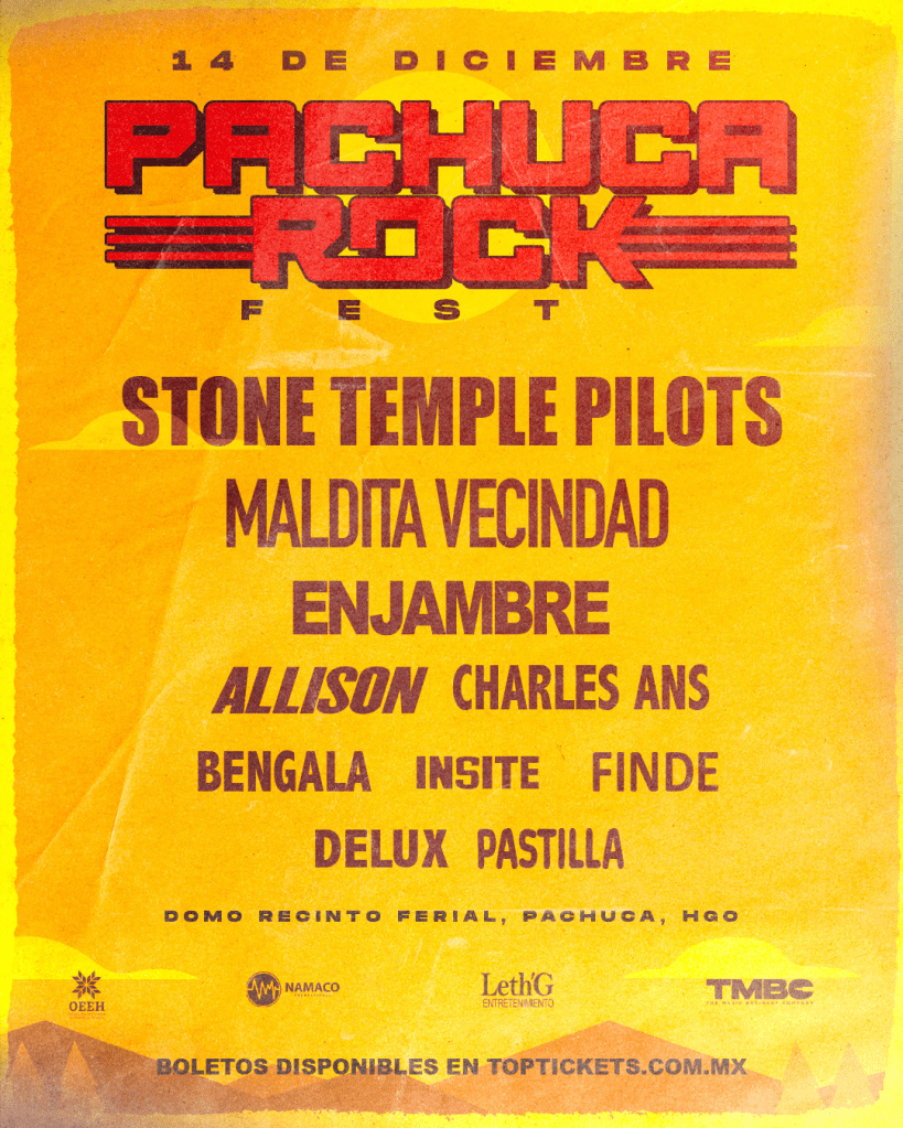 El festival reúne a lo mejor del rock nacional e internacional en un solo día. Desde leyendas como Stone Temple Pilots y Maldita Vecindad, hasta favoritos contemporáneos como Enjambre, Allison y Charles Ans. También estarán presentes bandas icónicas como Insite, Bengala y Finde, garantizando un espectáculo para todos los gustos.