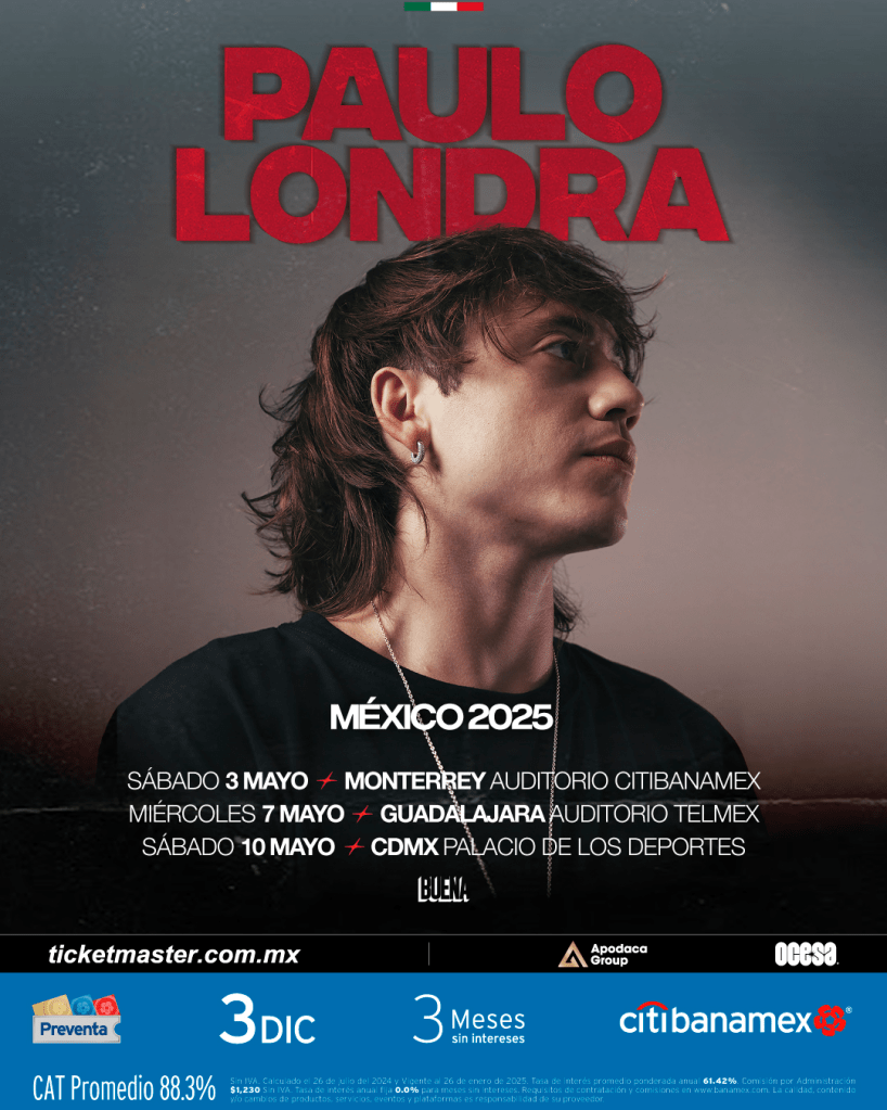El regreso de Paulo Londra a los escenarios mexicanos ha sido todo un fenómeno. Luego de su arrollador paso por el Coca-Cola Flow Fest el pasado 24 de noviembre —donde se apoderó de uno de los escenarios principales con un set cargado de himnos urbanos—, el artista argentino anunció oficialmente su gira por México en mayo de 2025, que incluirá presentaciones en Monterrey, Guadalajara y Ciudad de México.