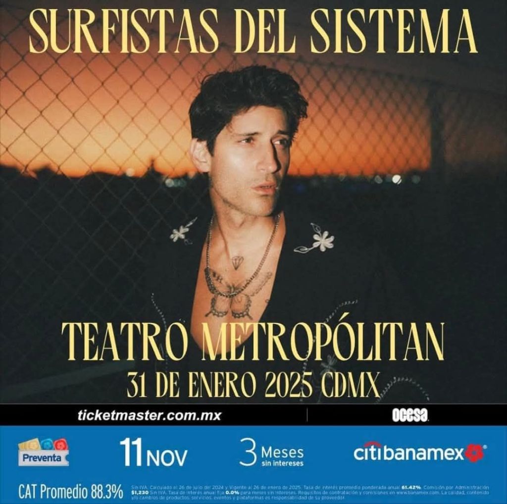 La Ciudad de México se prepara para recibir a Surfistas del Sistema, el proyecto liderado por Francisco Frione, que ha conquistado a miles de seguidores con su estilo único y su capacidad de conectar con el público. La esperada presentación se llevará a cabo el próximo 31 de enero de 2025 en el Teatro Metropólitan, uno de los recintos más emblemáticos de la capital mexicana.