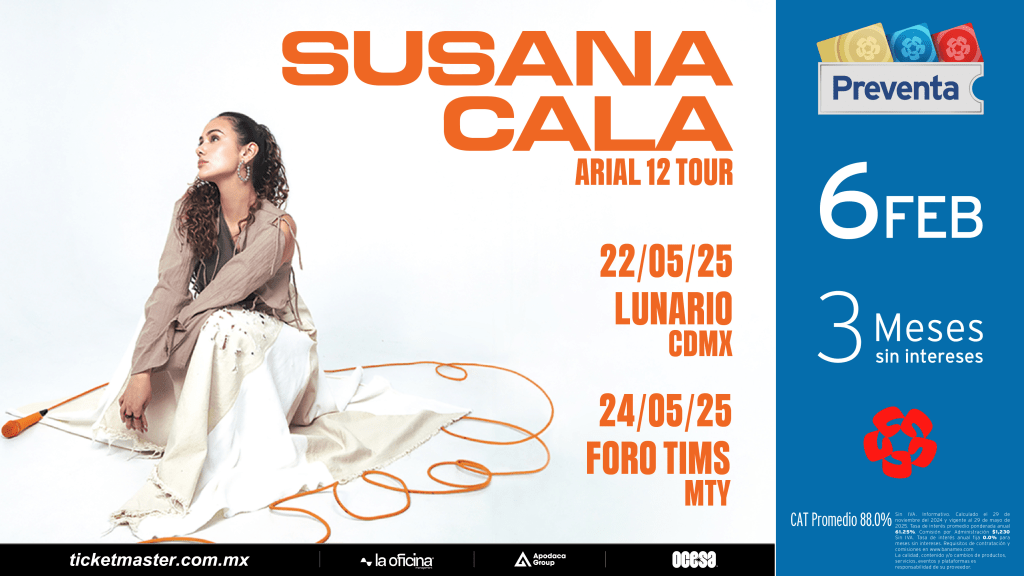 Si hay un buen plan para disfrutar este mayo, es cantar con Susana Cala en una velada íntima, llena de historias, melodías suaves y mucha conexión emocional. Los boletos estarán disponibles en preventa Banamex a partir del 6 de febrero, y un día después en taquillas o en ticketmaster.com.mx.