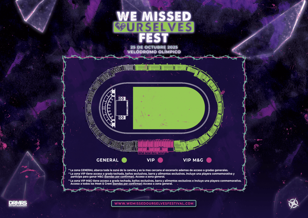 A pesar de no haber revelado el Line Up, la cuenta oficial del WE MISSED OURSELVES ya reveló el mapa con las secciones, precios y algunos detalles sobre el Festival.