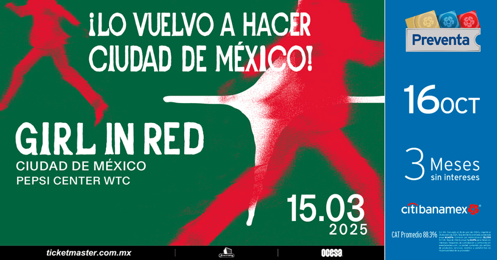 La cita está programada para el 15 de marzo en el Pepsi Center WTC, y los boletos ya están a la venta. Con este anuncio, el concierto de GIRL IN RED se perfila como uno de los eventos más esperados del año, con una combinación perfecta de talento internacional y mexicano en un mismo escenario.
