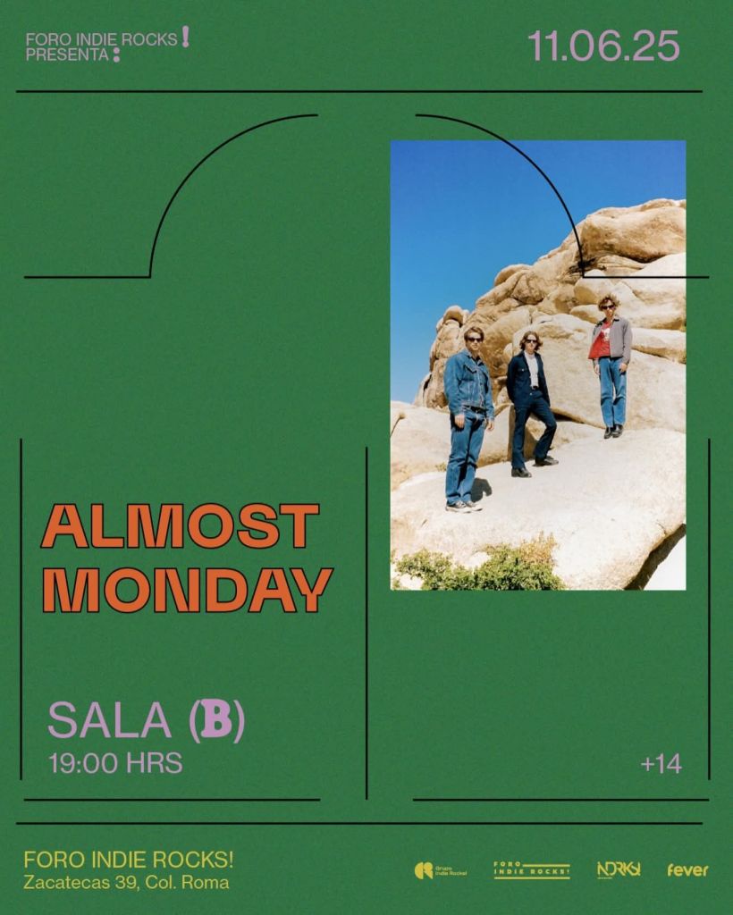 El próximo 11 de junio Almost Monday se presentará en la Sala B del Foro Indie Rocks! de la Ciudad de México.