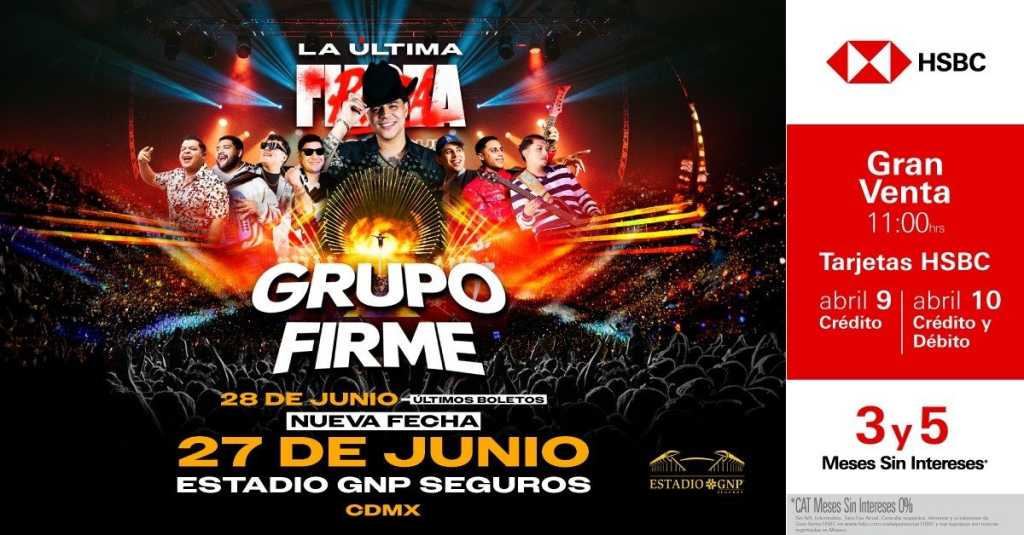 Así que si te perdiste la primera, esta es tu segunda oportunidad. Arma la salida con tu gente y aparta el 27 de junio pa’ vivir una noche que va a quedar pa’ la historia. ¡Corre por tus boletos porque se acaban en caliente! La venta arranca el miércoles 9 y jueves 10 de abril en la Gran Venta HSBC, y un día después en ticketmaster.com.mx o directo en taquilla. ¡Pura fiesta, pura Firme!