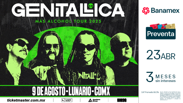 Formados a finales de los noventa, Genitallica irrumpió en la escena con un sonido que fusiona rock, punk y funk, acompañado de letras que hablan de la vida cotidiana con una dosis de sarcasmo y desparpajo. Con seis discos en su trayectoria y un séptimo en camino, la banda ha consolidado un público fiel que los sigue desde sus primeros éxitos como “Borracho”, “Imagina” y “No Tengo Amigos”, hasta sus más recientes producciones.