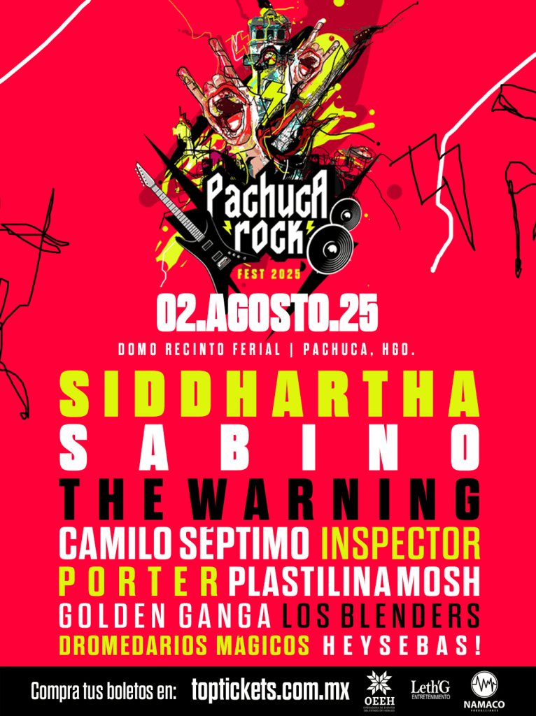 A pesar del cambio de último minuto, el Pachuca Rock Fest 2025 promete seguir siendo uno de los festivales más relevantes del centro del país. Con un cartel que incluye a Siddhartha, The Warning, Camilo Séptimo, Inspector, Porter, Plastilina Mosh, Golden Ganga, Los Blenders, Dromedarios Mágicos y Hey Sebas!, la variedad de géneros va del rock al ska, pasando por el indie y el pop alternativo.