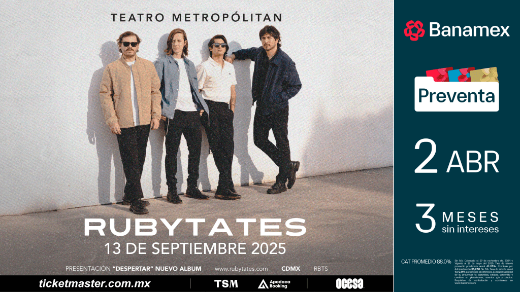 Rubytates está próximo a dar uno de los conciertos más grandes dentro de su trayectoria; el sábado 13 de septiembre brindará un show único en el Teatro Metropólitan de la Ciudad de México.