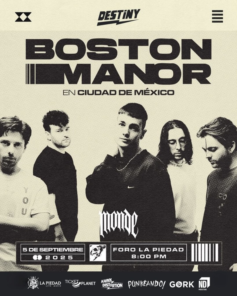 Boston Manor es una banda de post hardocre británica que se ha ganado una reputación en los últimos años por su constante evolución y su capacidad para mezclar géneros de forma audaz. Formada en 2013, la banda ha pasado de sus raíces en el pop punk a un sonido mucho más experimental e introspectivo.
