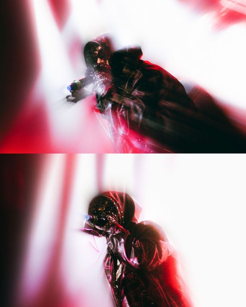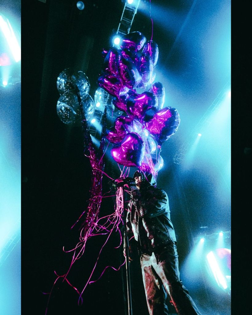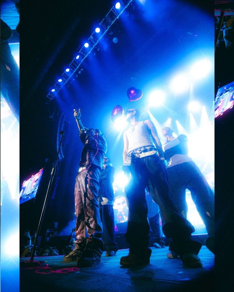 El concierto comenzó con la figura del rapero mexicano saliendo de una cortina de humo con unos globos en forma de corazón color rosa, para acercarse al público y abrir esta larga noche con la primer canción.